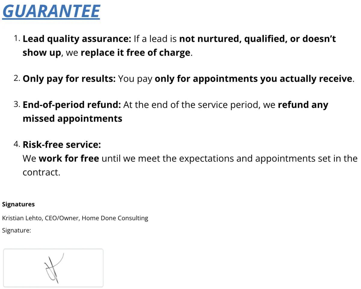 $50–$200 per qualified appointment, depending on your market, competition, needs, and monthly package size. This includes the full qualification process, appointment setting, confirmation sequences, and show up optimization - with no setup fees or hidden costs.