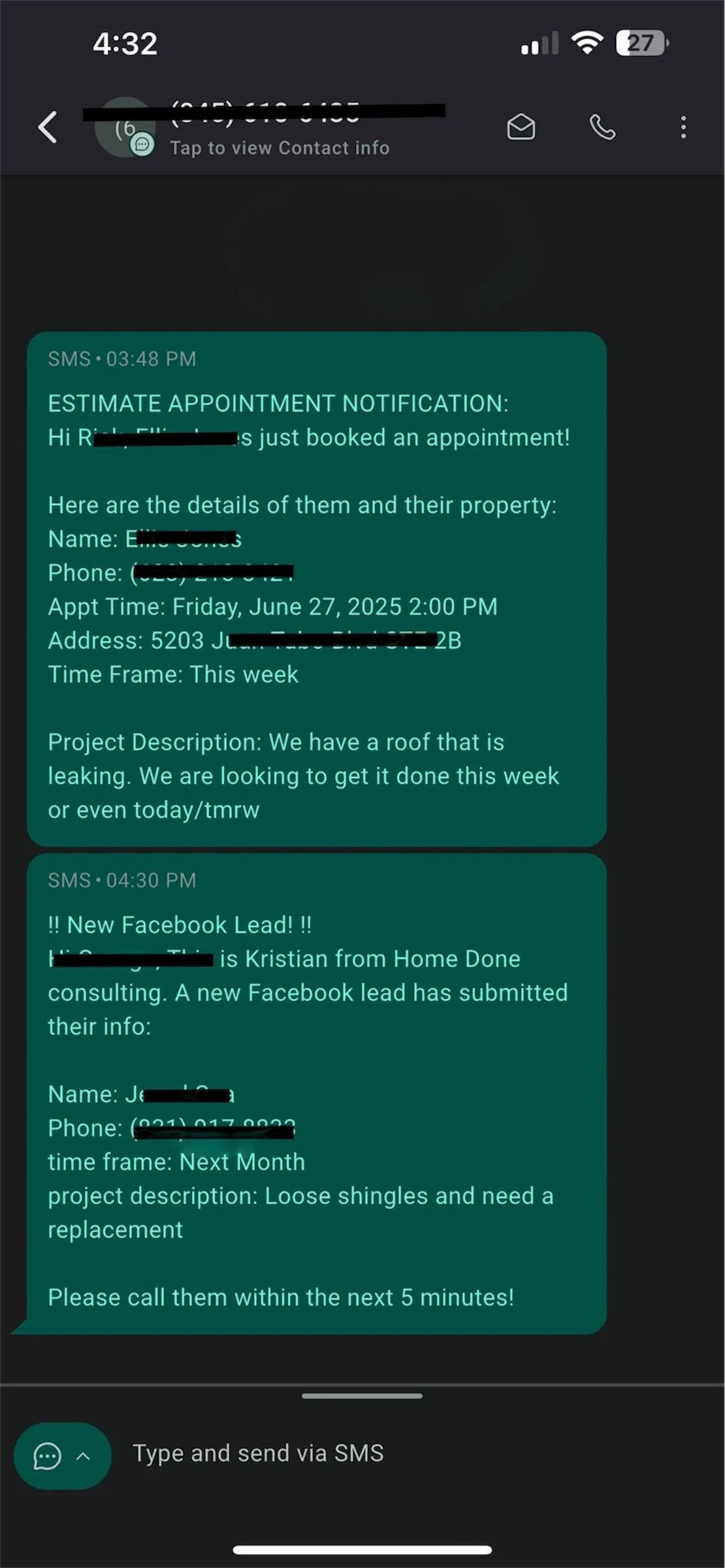 After working with Home Done Consulting, things shifted fast. In one week, we booked four qualified consultations and sent out $78,000 in estimates, real homeowners, not dead ends.